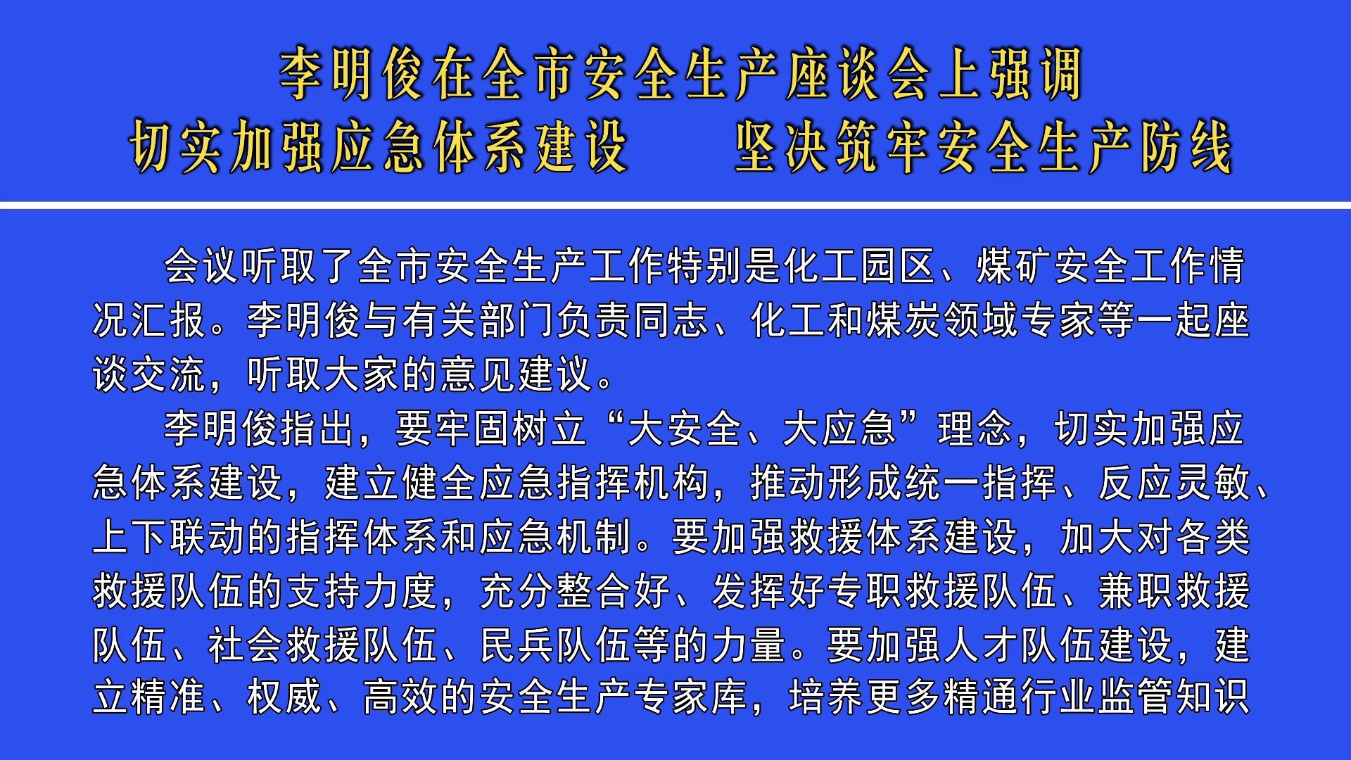 李明俊在全市安全生產(chǎn)座談會上強調(diào) 切...