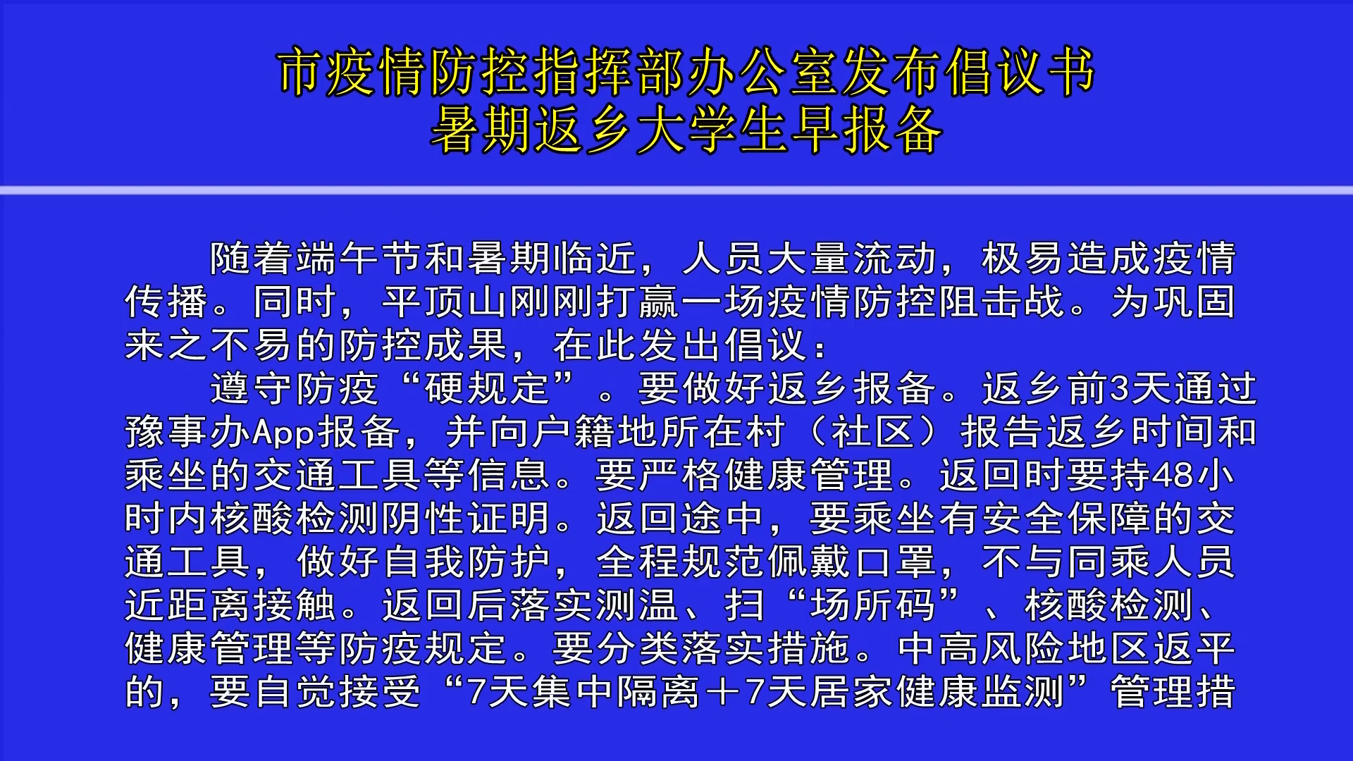 市疫情防控指揮部辦公室發(fā)布倡議書 暑期返鄉(xiāng)大學(xué)生早報(bào)備