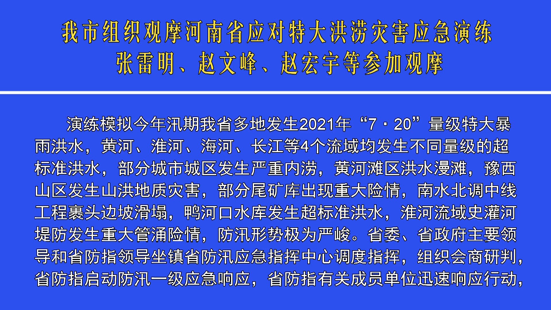 我市組織觀摩河南省應(yīng)對特大洪澇災(zāi)害應(yīng)急演練 張雷明、趙文峰、...