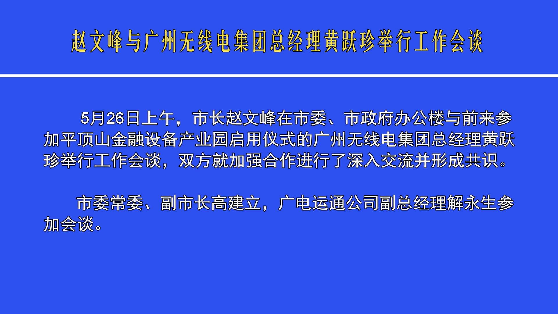 趙文峰與廣州無線電集團(tuán)總經(jīng)理黃躍珍舉行工作會(huì)談