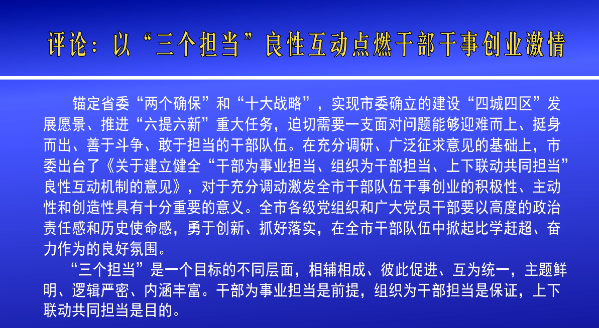 評(píng)論:以“三個(gè)擔(dān)當(dāng)”良性互動(dòng)點(diǎn)燃干部干事創(chuàng)業(yè)激情