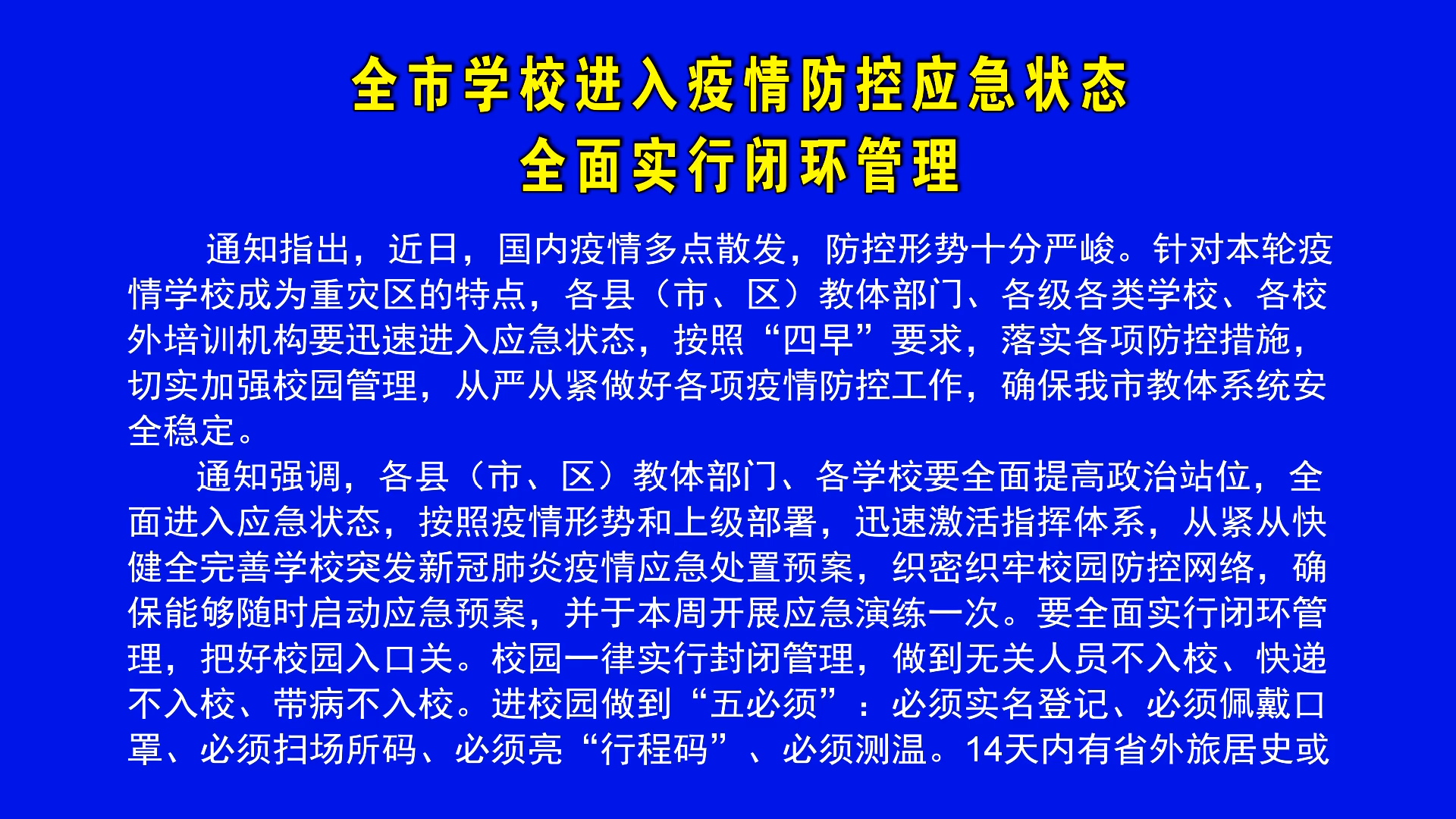 全市學校進入疫情防控應急狀態(tài) 全面實行閉環(huán)管理