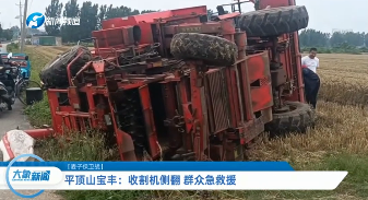 平頂山寶豐:收割機(jī)側(cè)翻 群眾急救援